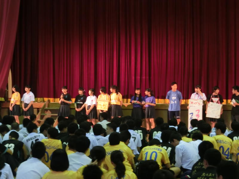 今月末から行われる県高校総体壮行式も行われ,各部主将が決意表明を述べるなど,校内全体の士気を高められた壮行式となりました。各部の活躍を期待したいです。