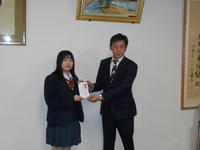 今月からスノーボードの国際大会に出場する2年生の野崎蘭さんの激励会が17日に行われました。会には学校長、教頭、同窓会長、両親、本人、担任が出席しました。会の最後には、本人から「頑張ってきます」と決意表明がありました。