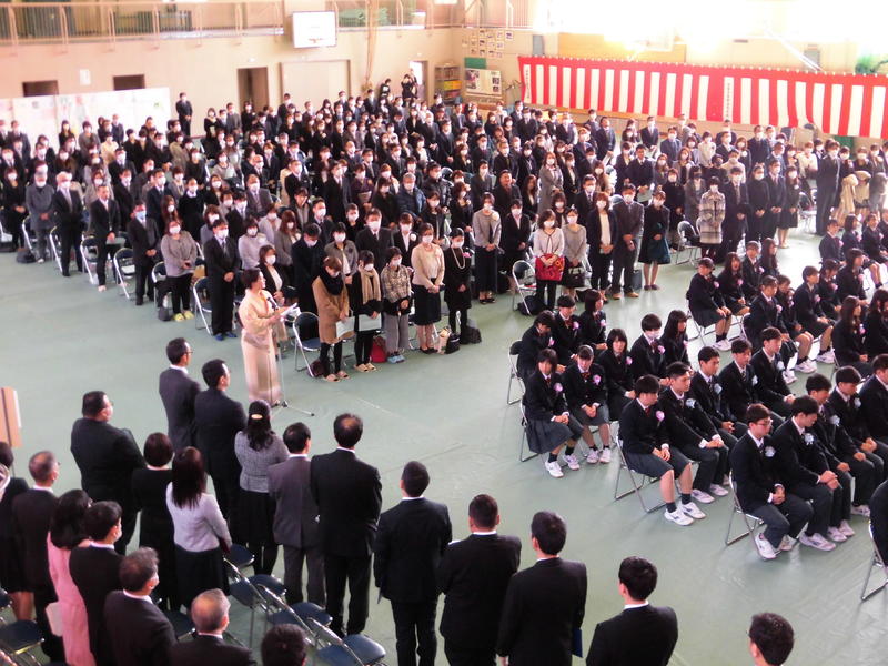 新型コロナウイルス感染防止のため,参列者規模を縮小してとなりましたが,卒業生156名の前途を祝う厳粛で感動に満ちた素晴らしい式となりました。