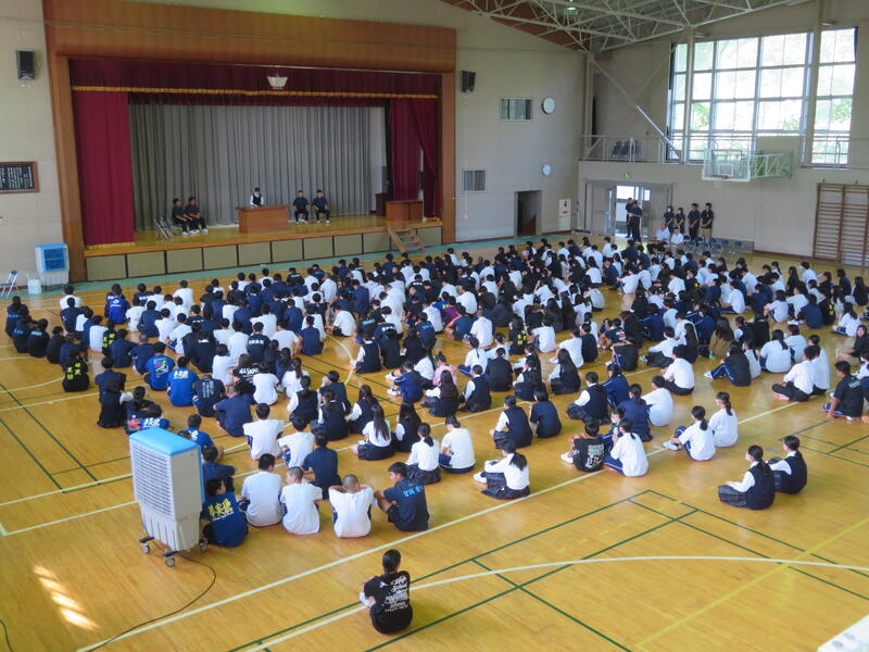 10月1日(月)の1校時に、本校体育館にて全校集会が行われました。