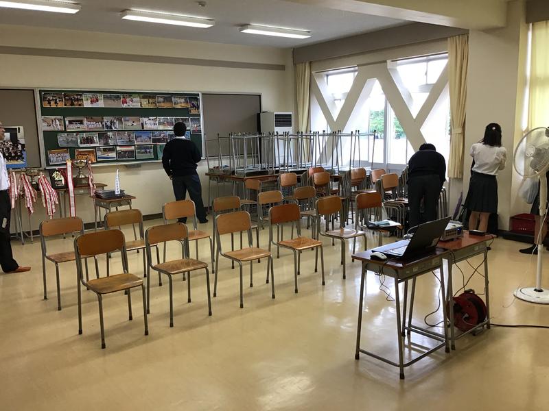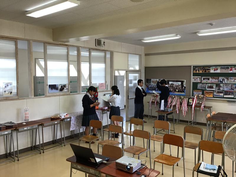 両国の先生方へは,学校長より英語によるプレゼンテーション,また生徒会役員の皆さんには映像と英語を織りまぜ,工夫された学校説明をしてもらいました。