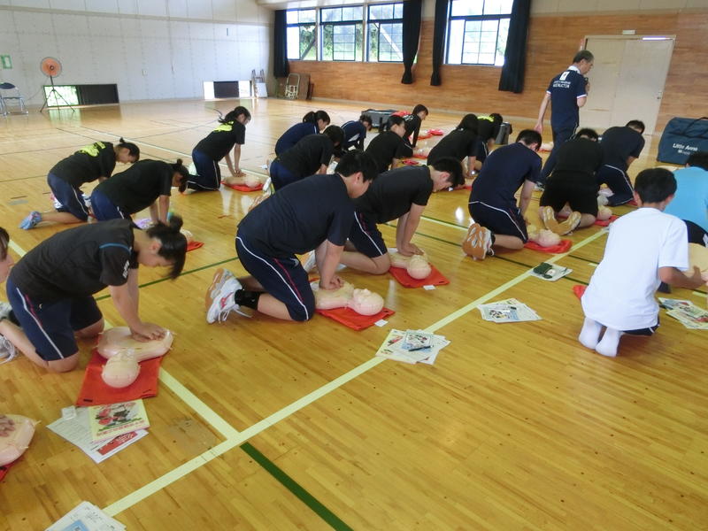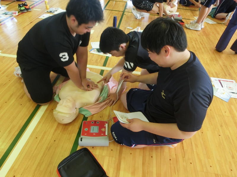 生徒は約60名参加し,講師の先生方のわかりやすい説明を聞きながら,心肺蘇生法と救急対応の重要性について改めて理解を深められた講習会となりました。