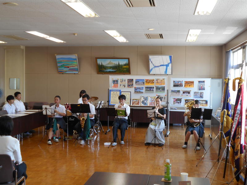 更に,吹奏楽部が日本を代表する名曲「川の流れのように」を演奏し,来校された先生方へ日本ならではの「おもてなし」を行いました。
