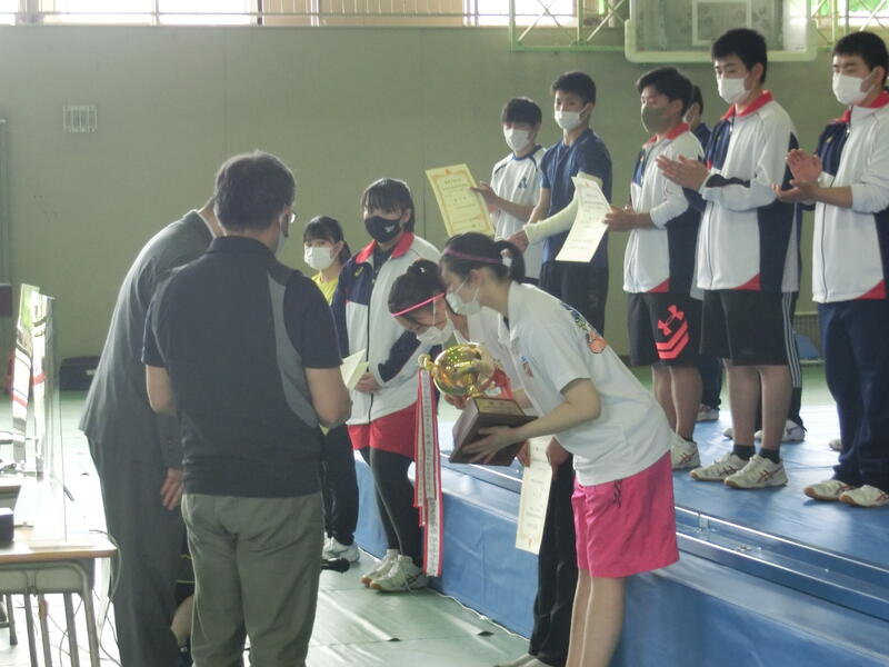 新型コロナウイルス感染拡大防止のため,全国選抜大会,全国高等学校女子選手権大会,インターハイ,国体が中止となり,3年生にとっては,この大会が唯一の全国大会でした。同じ会場で大会が行われ,選手たちがメダルや賞状を手にすることができないことは非常に残念ですが,入学時から目標としていた全国大会優勝・入賞ができた選手たちはよく頑張りました。