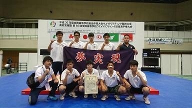8月1日(水)~6日(月) 三重県亀山市西野公園体育館において,平成30年度第65回全国高等学校総合体育大会ウエイトリフティング競技会が行われました。本校からは,7名の選手が出場し,4名が入賞,学校対抗においても6位入賞を果たしました。
