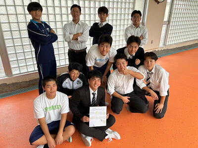 柔道部の後輩たちとの写真です。実習期間中、部活動の指導もしていただきました。