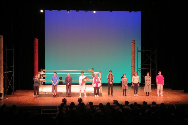 生徒たちは、エディと井岡の師弟関係やボクシングにかける熱い思いに共感しながら、静かに演劇に見入っていました。生徒たちは真剣に演劇を鑑賞し、物語の世界に引き込まれていました。