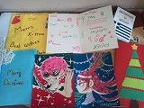 海外の学校19校と連携して、クリスマスカードを交換しました。カードのデザインは美術部の1年生が担当し、英文は1年生の平常講習受講者が考え、手書きで送りました。Merry Christmas and happy new year!
