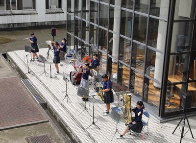 2020/9/4,5 柴高祭の様子です。 体育館ステージと中庭で演奏を披露しました。↑