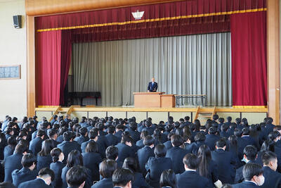 明日から始まる冬休みが、みなさんにとって次の飛躍につながる有意義な時間となること、そして1月8日の登校日に、全員が無事にこの場に集えることを願い、講話とします。