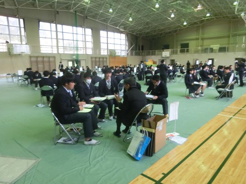 大学短大・専門学校進学,民間・公務員就職の分野に分かれ行われました。講師となった3年生と卒業生は「合格」を勝ち取るまでの苦労話や,「受験時の心得」等を後輩たちに熱心に話をしてくれました。