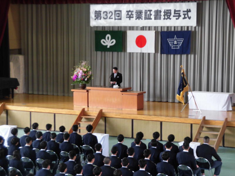 新型コロナウイルス感染防止のため,参列者規模を縮小してとなりましたが,卒業生156名の前途を祝う厳粛で感動に満ちた素晴らしい式となりました。