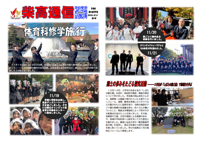 今回の「柴高通信」第9号では、体育科の東京方面修学旅行の様子を中心に 、部活動の県新人大会での活躍 、そして2学年の郷土の歩みをたどる探究活動の模様を紹介しています 。